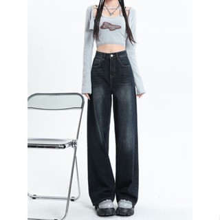 Jiashucheng Quần Jean Ống Rộng Màu Xanh Dương Đậm Phong Cách Mới Xuân Thu Cho Nữ