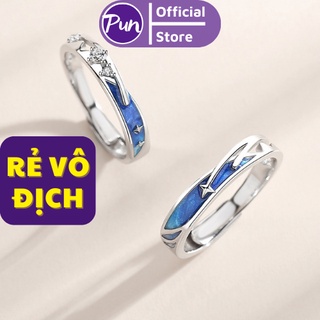 Nhẫn cặp đôi bạc nam nữ đính đá chất liệu titan chống rỉ uyên ương đẹp hot PUN - Nhẫn Đôi Meteor