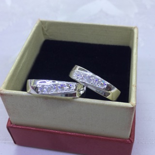Nhẫn đôi bạc đính đá chéo chuẩn nmj
