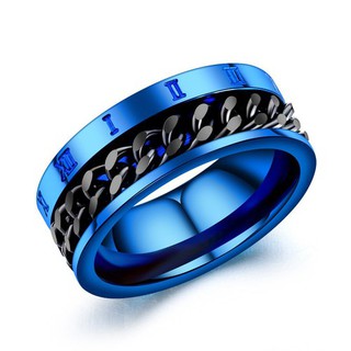 Nhẫn Nam Dây Xích Khắc Số La Mã Titan Ko Đen TT 3041