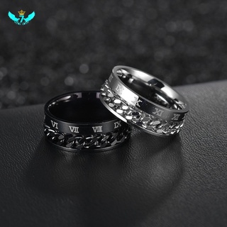 Nhẫn Thép Titan Khắc Số La Mã Phối Dây Xích Xoay Cá Tính