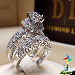 ESPO Set 2 Nhẫn Đôi Mạ Bạc Đính Đá Pha Lê Sang Trọng
