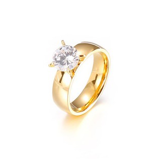 Nhẫn Titan Mạ Vàng 18K Đính Kim Cương Lấp Lánh Chống Rỉ Sét