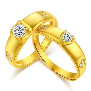 Nhẫn Đính Hôn Cặp Đôi Nhẫn Kim Cương Hình Trái Tim Mạ Vàng 24K Thời Trang Cho Nam Nữ