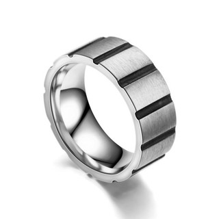 Nhẫn Nam Bản To Kẻ Sọc Màu Đen Titan Ko Rỉ TT 2328