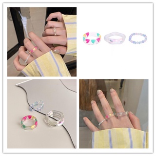 Bộ 3 Nhẫn Nhựa Acrylic Trong Suốt Đính Hạt Hình Trái Tim Thời Trang Cho Nữ