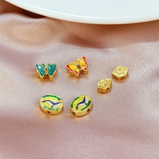 Hạt Xỏ Vòng Tay Bằng Đồng Mạ Vàng 18K DIY Hình Cá Heo/Bướm Dầu Màu Vàng Kim