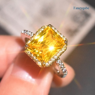 Nhẫn Hở Hai Màu Vàng Khảm Đá Pha Lê Vàng Hình Vuông Sang Trọng Cổ Điển Dành Cho Nữ