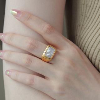 Nhẫn Nữ Hình Học Mặt Vuông Trắng Titan Ko Đen TT 4156