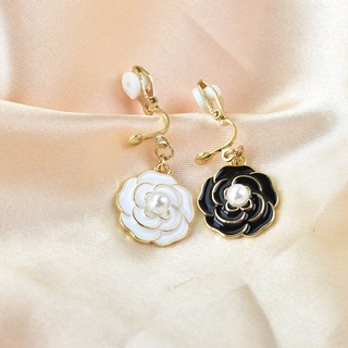 Khuyên Vành Tai Hình Hoa Tráng Men Màu Trắng Đen Không Cần Xỏ Lỗ