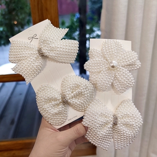 Kẹp tóc trang trí nơ nơ đính hạt ngọc trai phong cách Hàn Quốc