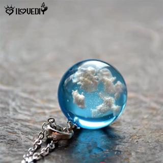 Vòng cổ mặt resin hình tròn trong suốt họa tiết bầu trời xanh và mây trắng phát sáng trong bóng tối thời trang cho nữ