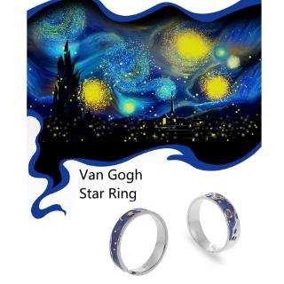 Nhẫn mạ bạc 925 phong cách tranh bầu trời đầy sao Van Gogh độc đáo