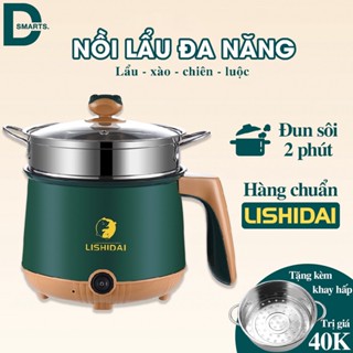 Nồi Lẩu Điện Mini Đa Năng tay cầm gỗ, Nồi Nấu Mì, Nấu Cơm 2 Nấc Nhiệt Dung Tích 1,6L Kèm Giá Hấp Tiện Lợi chống dính