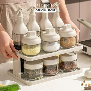 BỘ HỦ ĐỰNG GIA VỊ, CHAI ĐỰNG GIA VỊ KÈM KỆ THỦY TINH CAO CẤP EMMO BLISSFUL