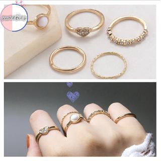 woman Korea simple 5 Pcs Pearl Heart Combination Ring charm girls rings set