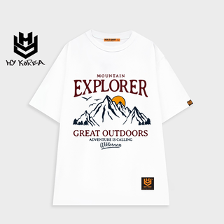 Áo thun nhóm lớp tay lỡ HY KOREA nam nữ form rộng in hình Núi Explorer 524