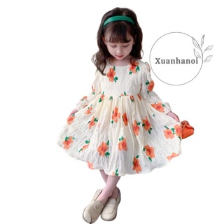 Váy bé gái hoa cam dài tay đũi mềm 8-30kg XHN1064