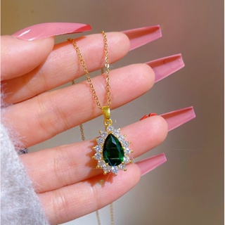 Dây Chuyền Titan Đá Nhân Tạo Hình Giọt Nước Xanh Lá TT 4190