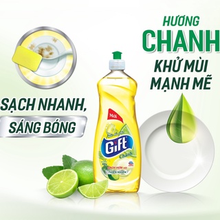 Nước Rửa Chén Gift Chanh chai lớn tiết kiệm 800gr rửa sạch chén/bát đánh bay dầu mỡ khử mùi tanh dịu nhẹ da tay