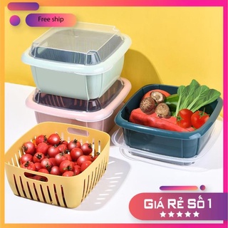 Hộp Rổ Đựng Rau Củ, Trái Cây Ráo Nước 2 Lớp Có Nắp Đậy 3 Trong 1 Đựng Đồ Đa Năng