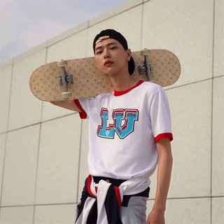 L & V Áo Thun Tay Ngắn Màu Tương Phản In logo Trước Cổ Điển Tương Phản Thời Trang Thường Ngày Cho Nam Và Nữ