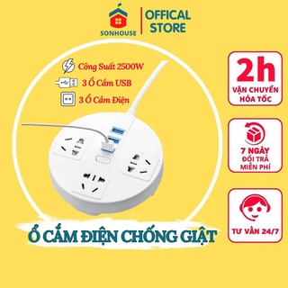 Ổ Cắm Điện, Ổ Điện Thông Minh Đa Năng Chống Giật, Chịu Tải 2500W, Tích Hợp Cổng Cắm USB Sạc (TRÒN VERSION 3) SONHOUSE
