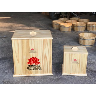 Thùng gỗ đựng gạo dáng vuông, thùng đựng gạo gỗ thông 50-60kg