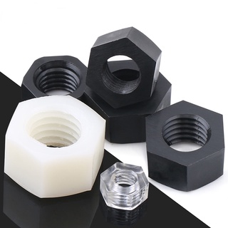 Set 10 Đai Ốc Lục Giác M2M2.5M3M4M5M6-M20 Bằng Nhựa Nylon Trong Suốt trắng hoặc đen các loại bắt mạch cách điện