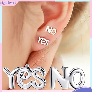 Bông tai mạ bạc hình chữ Yes No thời trang nữ