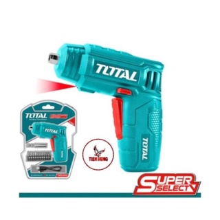 Máy bắn vít cầm tay TOTAL TSDLI0402 kèm 10 mũi vít 25mm, 1 mũi từ, 1 sạc, dụng cụ siết vít mini dùng pin Lithium 4V