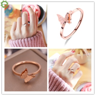 1 nhẫn hình bướm bằng thép titan màu vàng hồng kích thước 6-9
