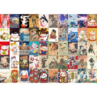 Combo Set 50 tờ Decal dán tường Mèo Thần Tài Nhật Bản Khổ A3,A4,A5
