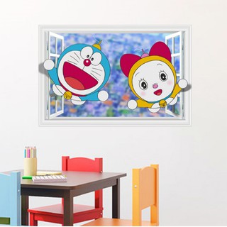 Decal trang trí khung cửa sổ Doremon và Doremi