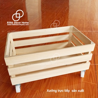Thùng Pallet gỗ hộp đựng đồ đa năng có bánh xe đẩy kéo, trang trí homestay, Kệ decor gỗ thông đa năng gỗ thông