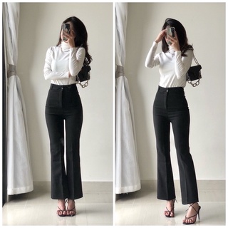 Quần dài ống loe nữ thun cotton, cạp cao chuẩn form tôn dáng siêu đỉnh, quần ống loe ôm nâng mông Mlem.