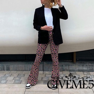 Quần Ống Loe Lưng Cao In Họa Tiết Thiết Kế Mới Thời Trang Cho Nữ