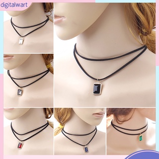 Vòng cổ choker nhung 2 lớp mặt đá chữ nhật giản dị cho nữ