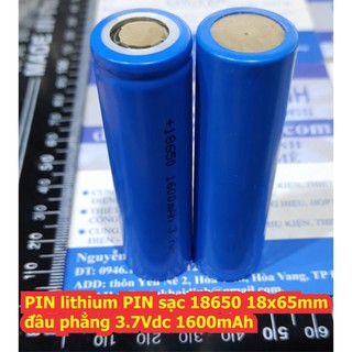 PIN lithium PIN sạc 18650 18x65mm đầu phẳng 3.7Vdc 1600mAh kde7059