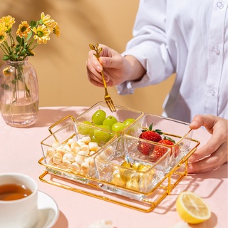 Combo Bộ Khay Mứt Tết 4 hộp thủy tinh có nắp đậy kèm giá đựng kim loại hàng cao cấp