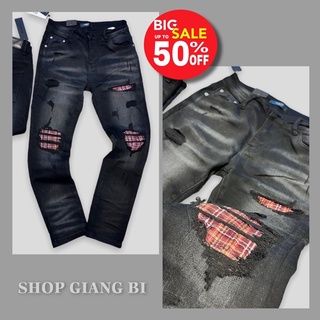 Quần jean AIMIRI vá da,Quần bò vá da nam hot 2022