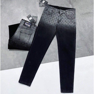 Quần jean nam cao cấp jean bò LV-AMIRI dày đẹp mix khóa kéo chuẩn đẹp