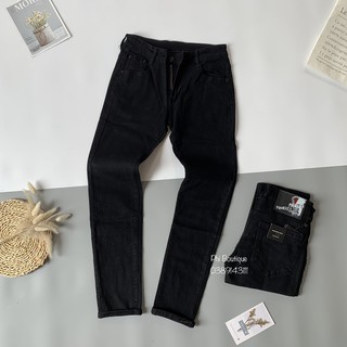Quần Bò Đen Nam Trơn Phối Thêu Khoá Zip Ống