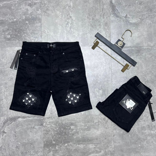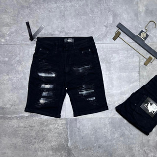 Quần short bò nam Amiri đen rách xù tua vá da nhăn đen thỏ Playboy mềm đẹp co giãn cao cấp