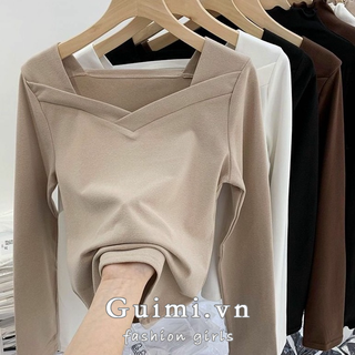 Áo Kiểu Cổ Vuông Màu Trơn Thiết Kế Mới Thời Trang Mùa Thu Đông Dành Cho Nữ