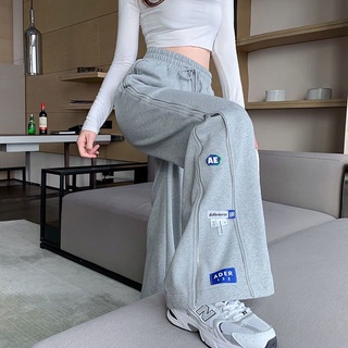 Jiashucheng Quần Thể Thao Ống Rộng Mỏng Màu Xám Phong Cách Harajuku Thu Đông Cho Nữ