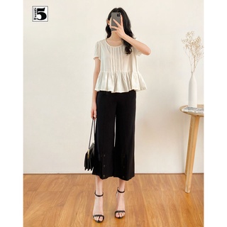 Quần vải nữ công sở suông rộng lửng gấu cài cúc Twentyfive N632
