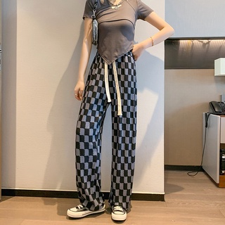 SUXI Quần ống rộng Họa Tiết Sọc Caro Phong Cách Retro Hàn Quốc Thời Trang Cho Nữ