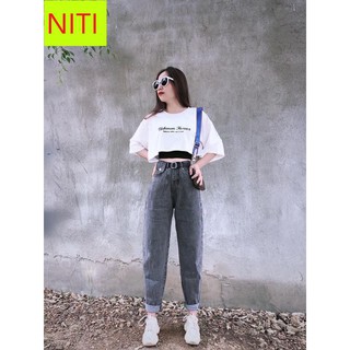 QUẦN BAGGY JEAN NỮ LƯNG CAO MÀU XÁM ĐEN 2 NÚT CỰC CÁ TÍNH NITI