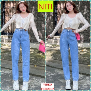 Quần jean nữ ống đứng quần bò jean ống suông jean nữ cạp cao ống rộng co dãn SM285